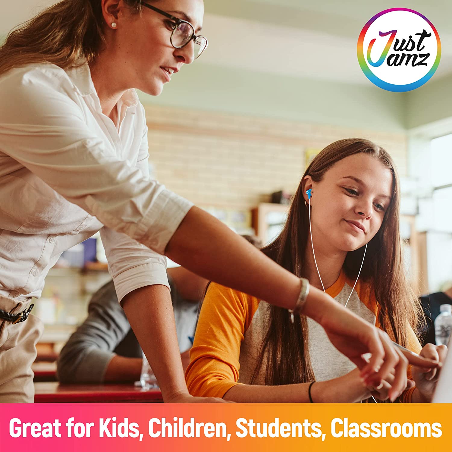 JustJamz Bubbles colorful In-Ear Earbud Headphones 3.5 MM Audio jack stereo headphones pack of 30 Much more than just disposable headphones , the JustJamz Bubbles earbuds are the ultimate solution for classrooms, museums, camps, school trips, resale and much more! These quality affordable headphones come in 6 different colors : purple, red, blue, pink, yellow, green and baby pink (white cord), making them the ultimate ear buds for kids, each student can have their own and when they lose them there is always a spare!