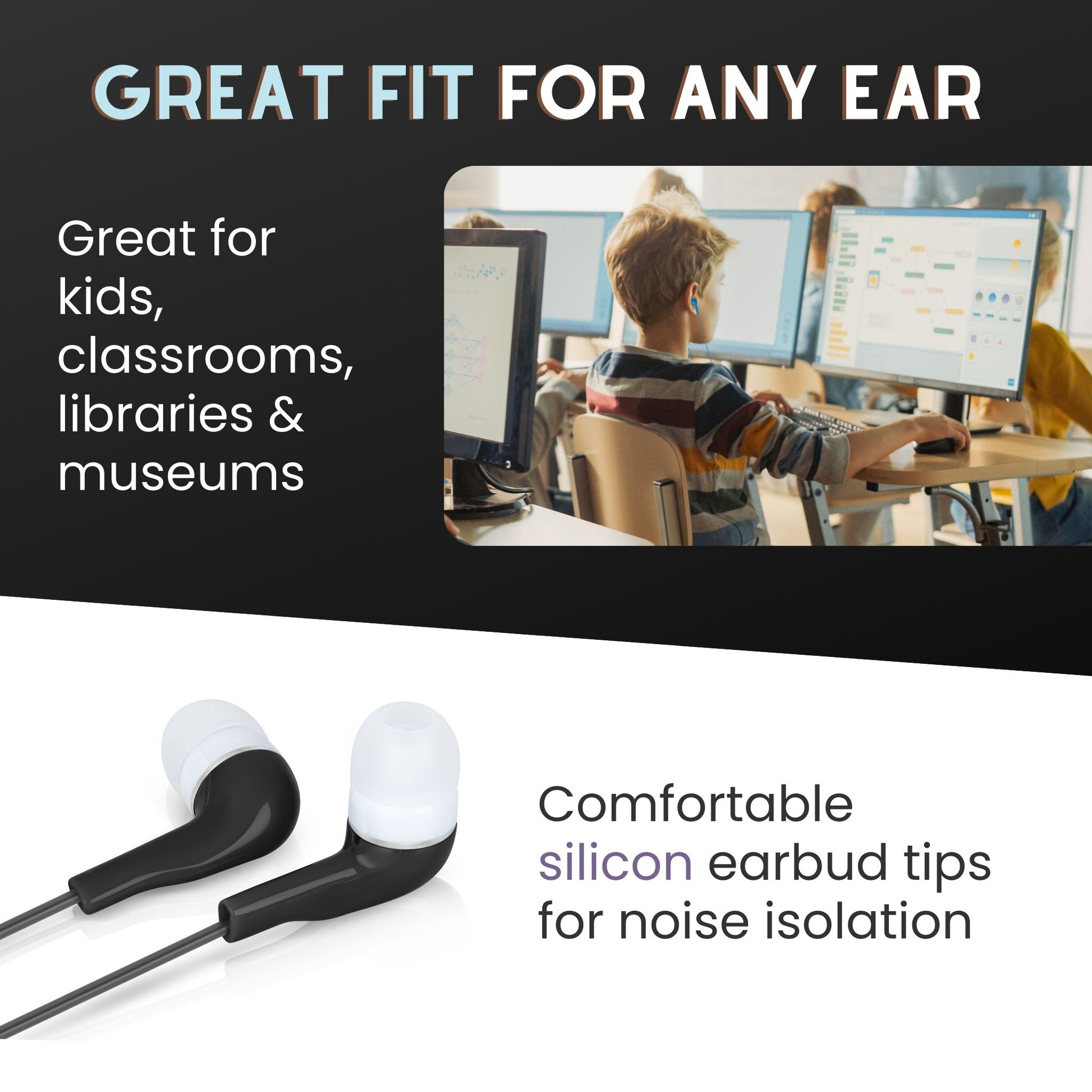 ULTIMATE EARBUDS FOR KIDS: great for classrooms, libraries, study groups or just to have around the house when the kids keep losing them.